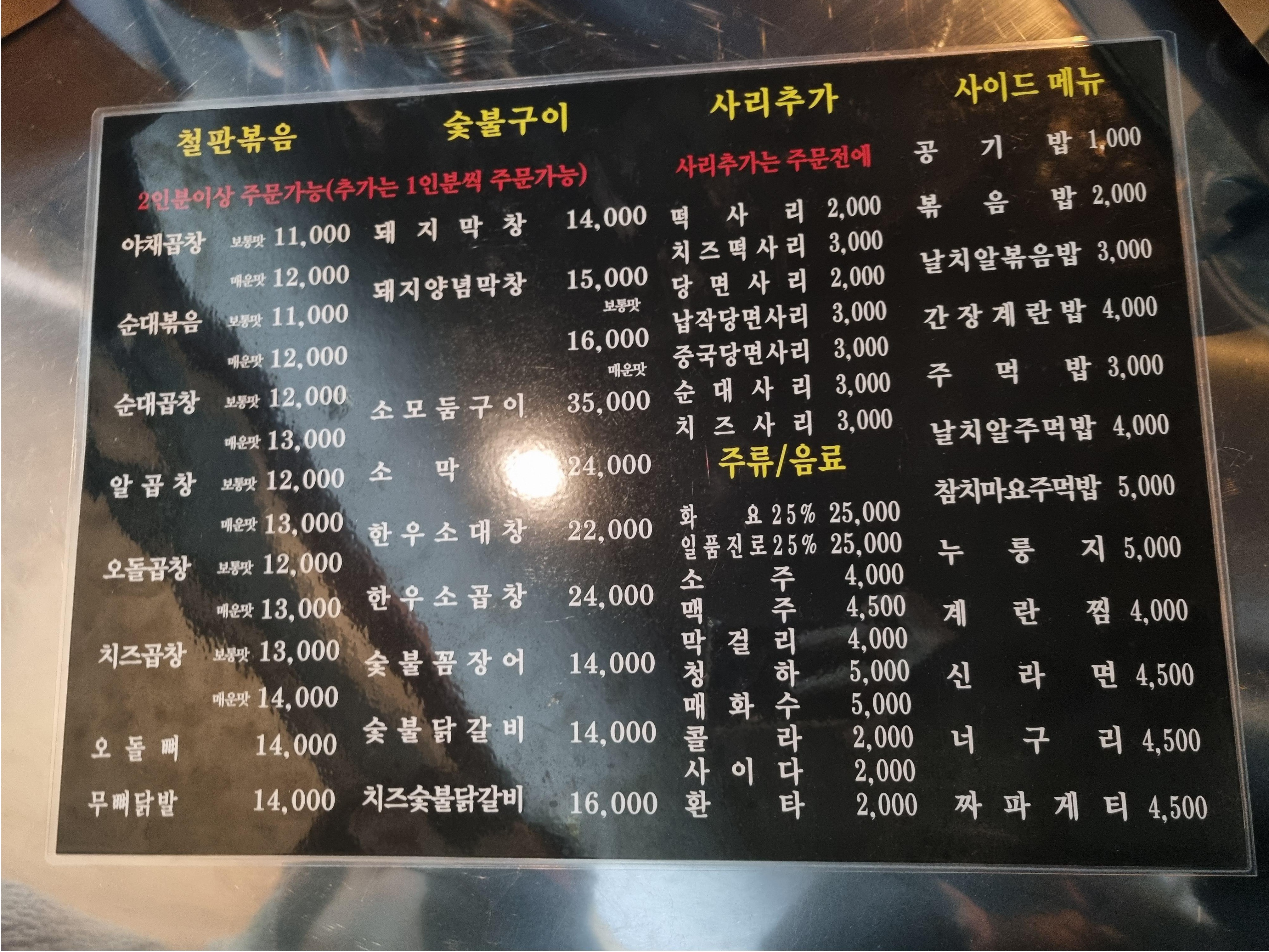 일요일 저녁, 월요팅을 위해 양념 곱창 순대볶음을 찾아 헤맸어요. 원래 매번 도전할 때마다 번번이 실패하는 음식이었는데 근처에서 열심히 찾아낸 가게예요. 포장, 배달 모두 하는 곳인데 모처럼 매장을 들리니 훨씬 맛있더라고요. 오늘은 꼭 방문 후기를 남겨야겠다 생각했어요.