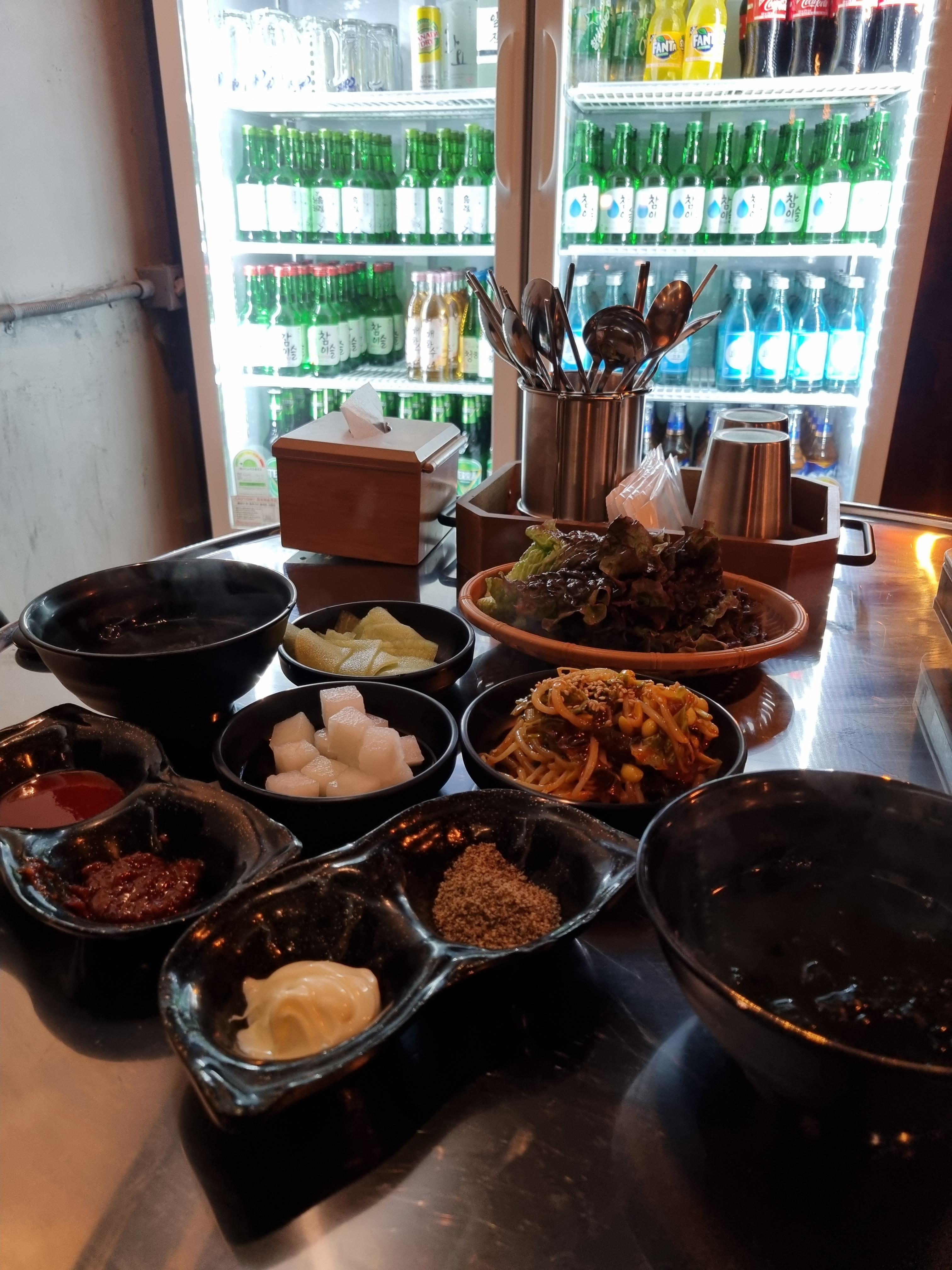 쌈채소와 콩나물 양념 무침은 따로 가져다주시고, 나머지 소스나 반찬은 셀프바를 이용하면 돼요. 콩나물 무침은 아삭하고 새콤달콤해서, 곱창하고 같이 먹으면 딱이에요. 느끼함을 싹 잡아주는 맛입니다!