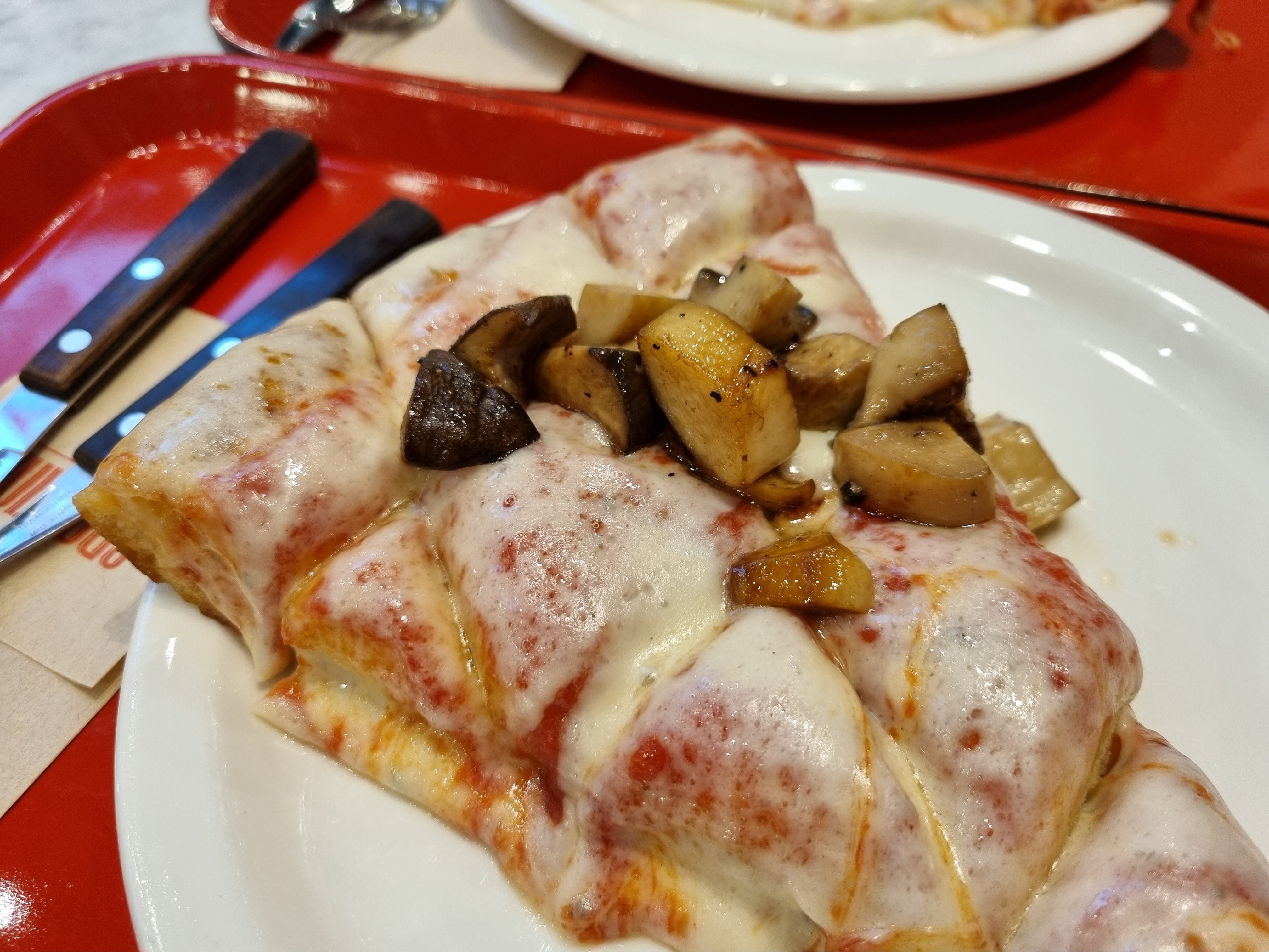 버섯 피자입니다. 버섯 토핑이 아주 쥐똥만큼 들어가있지만 버섯에 후추 간을 해놓아서 맛이 확 느껴지기는 해요. 프로슈토&버섯으로 시키는 게 조금 더 좋았겠다 싶었습니다.