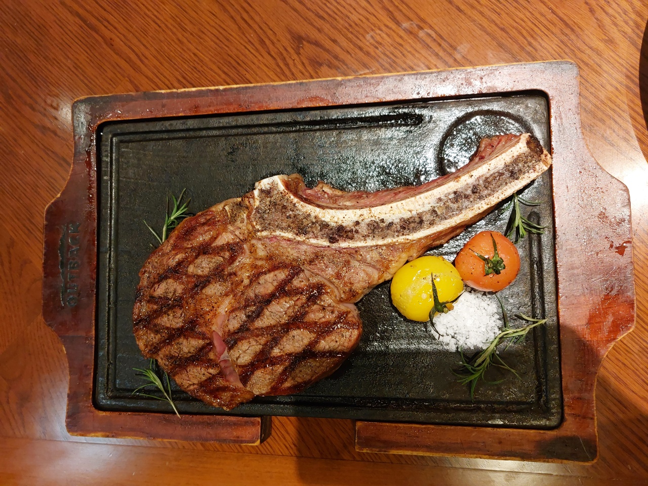 토마호크 스테이크는 정말 맛있는 새우살, 꽃등심, 갈빗살로 구성되어 있어요.
