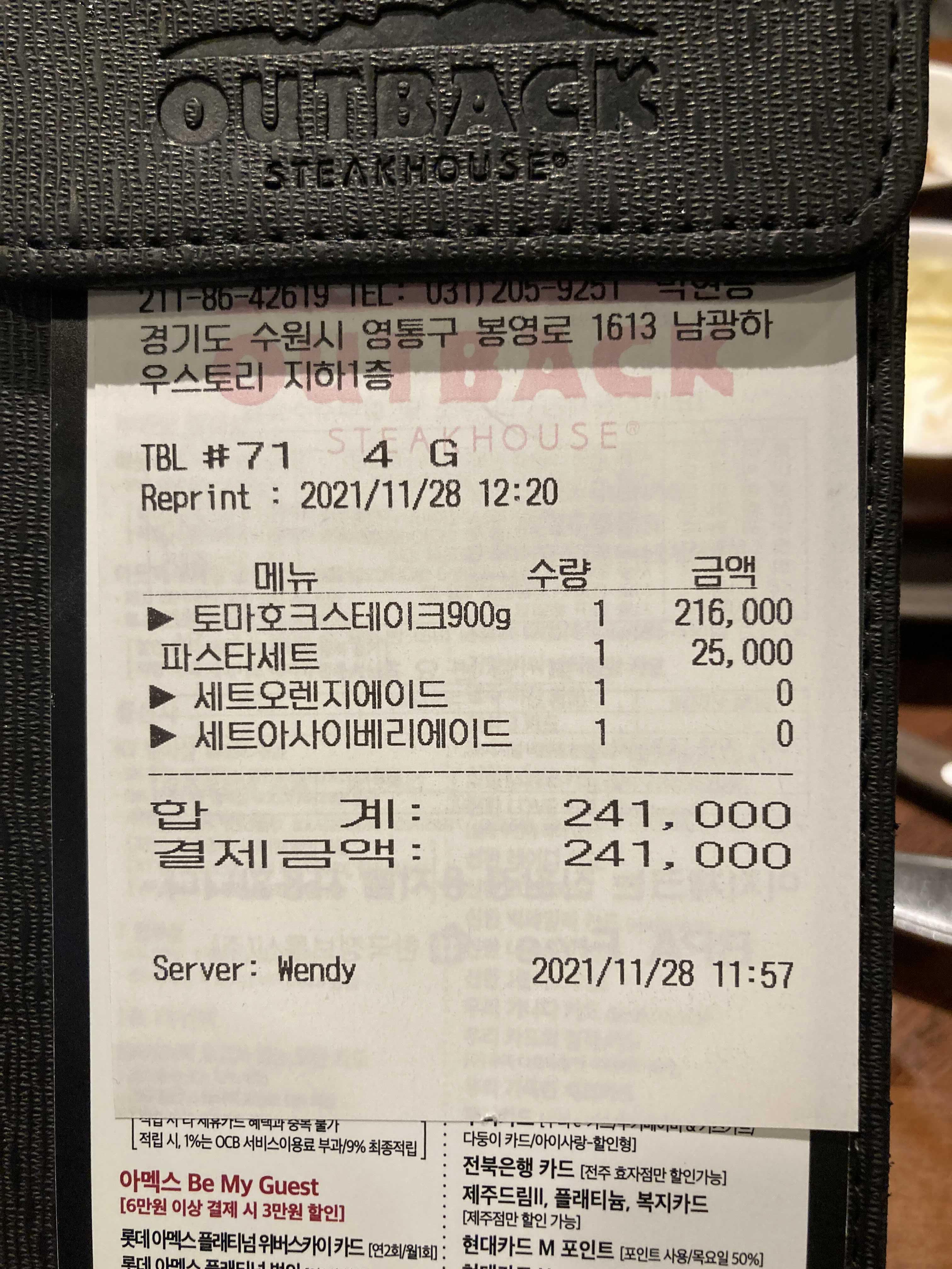 아웃백 토마호크 할인은 총 4가지 팁이 있어요!