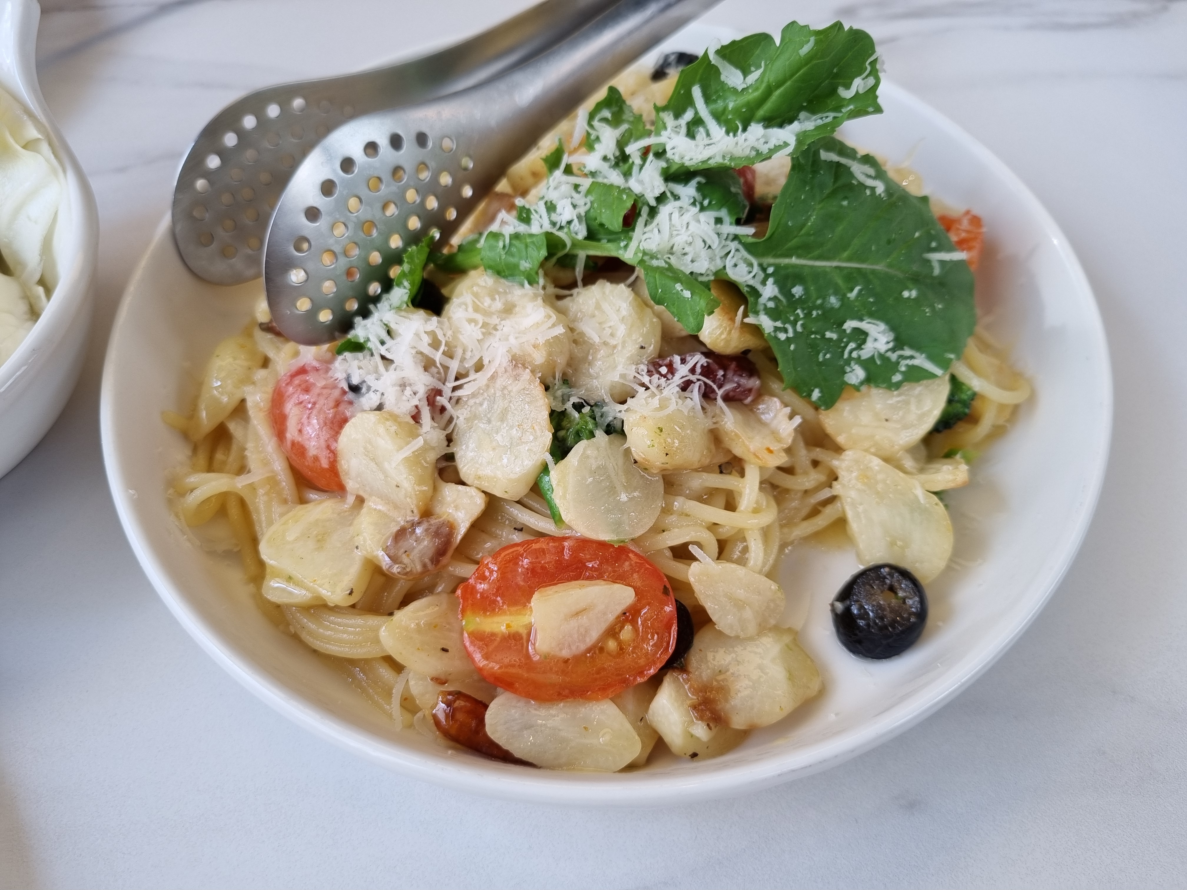 꽃게 파스타보다 더 맛있었던 알리오올리오입니다. 저희는 모시조개나 해산물 육수를 베이스로 하는 파스타를 좋아하지 않아요. 그래서 보통 마늘을 베이스로 하는 알리오올리오를 즐겨서 먹는 편입니다.