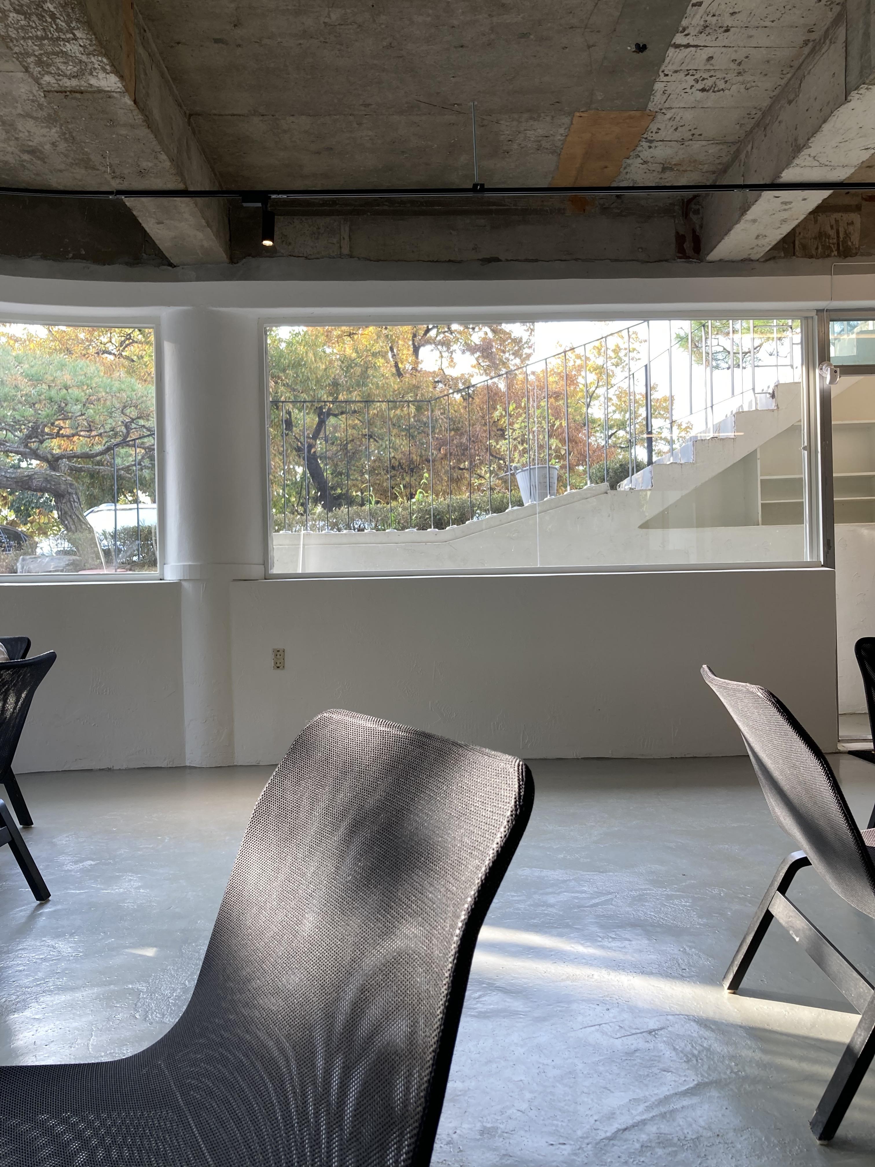 참고로, 1층은 공간이 넓고 테이블이 몇 개 없어 한적해요. 강아지를 데리고 오거나 가족 단위로 왔을 때 널찍하게 자리 잡기에 편해보였어요. 대신, 살짝 반지하처럼 내려가 있는 점 참고해주세요.