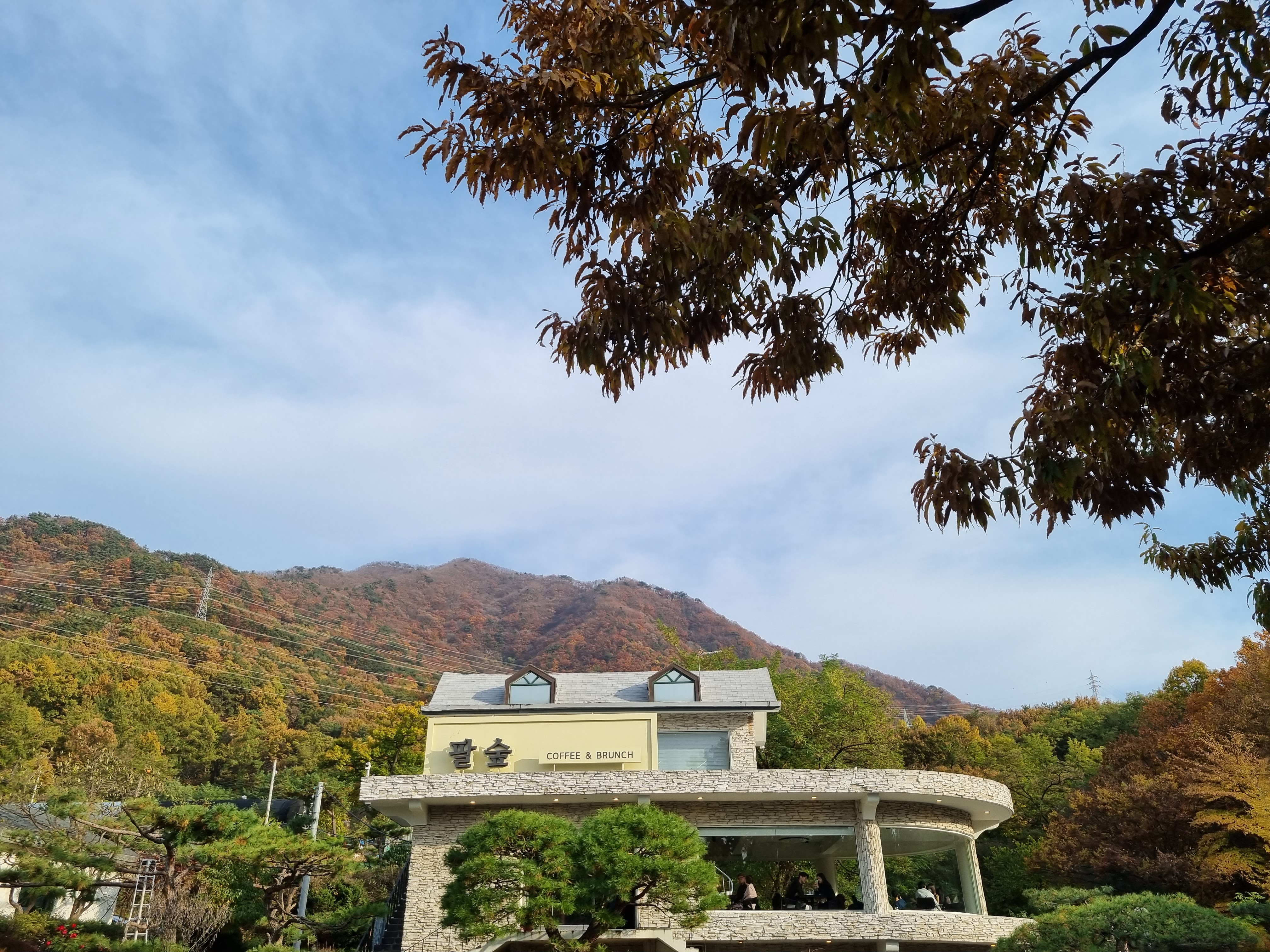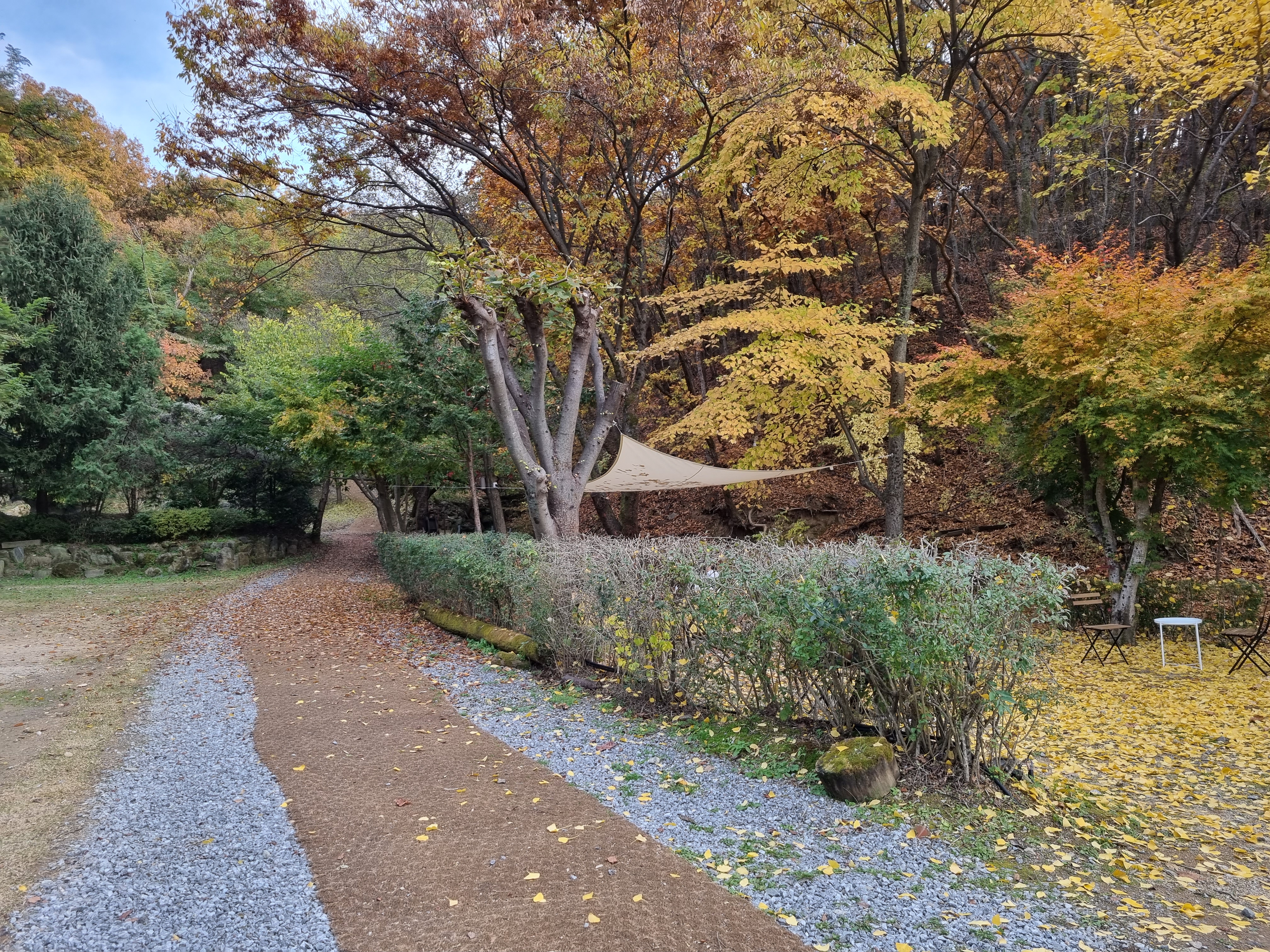카페로 올라가는 길부터 단풍이 가득해서 마치 시골에 있는 별장으로 놀러 가는 듯한 기분이었어요. 카페 초입부터 시작해서 널따란 공간이 눈에 확 들어왔고, 커피를 마시면서 단풍 구경하기에 너무 좋아 보였습니다.