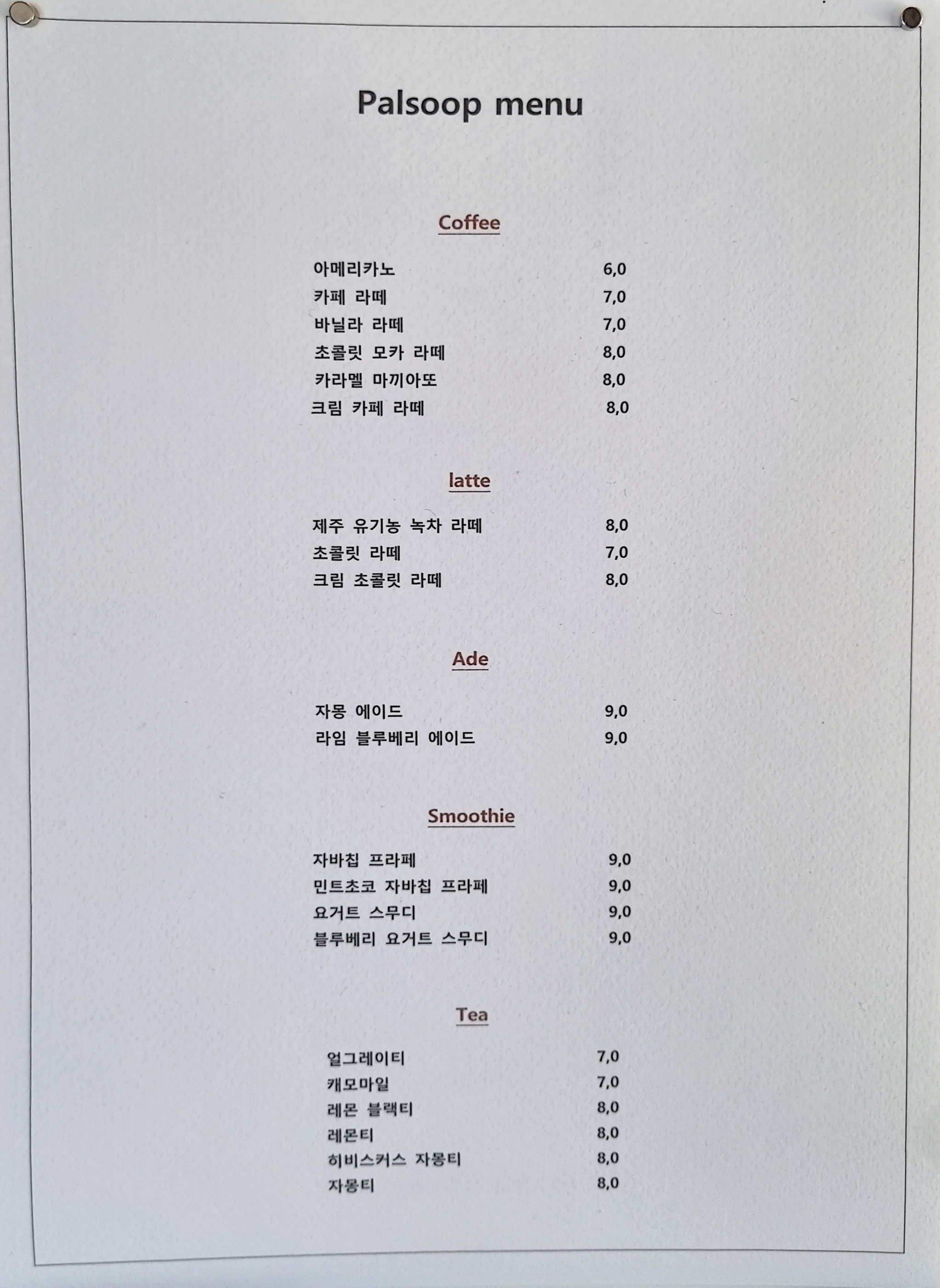 음료 외에 브런치 세트와 간단한 베이커리류를 팔고 있어요. 아무래도 예쁜 뷰를 가지고 있다 보니, 전체적으로 가격대가 일반 카페보다 높은 편이에요.