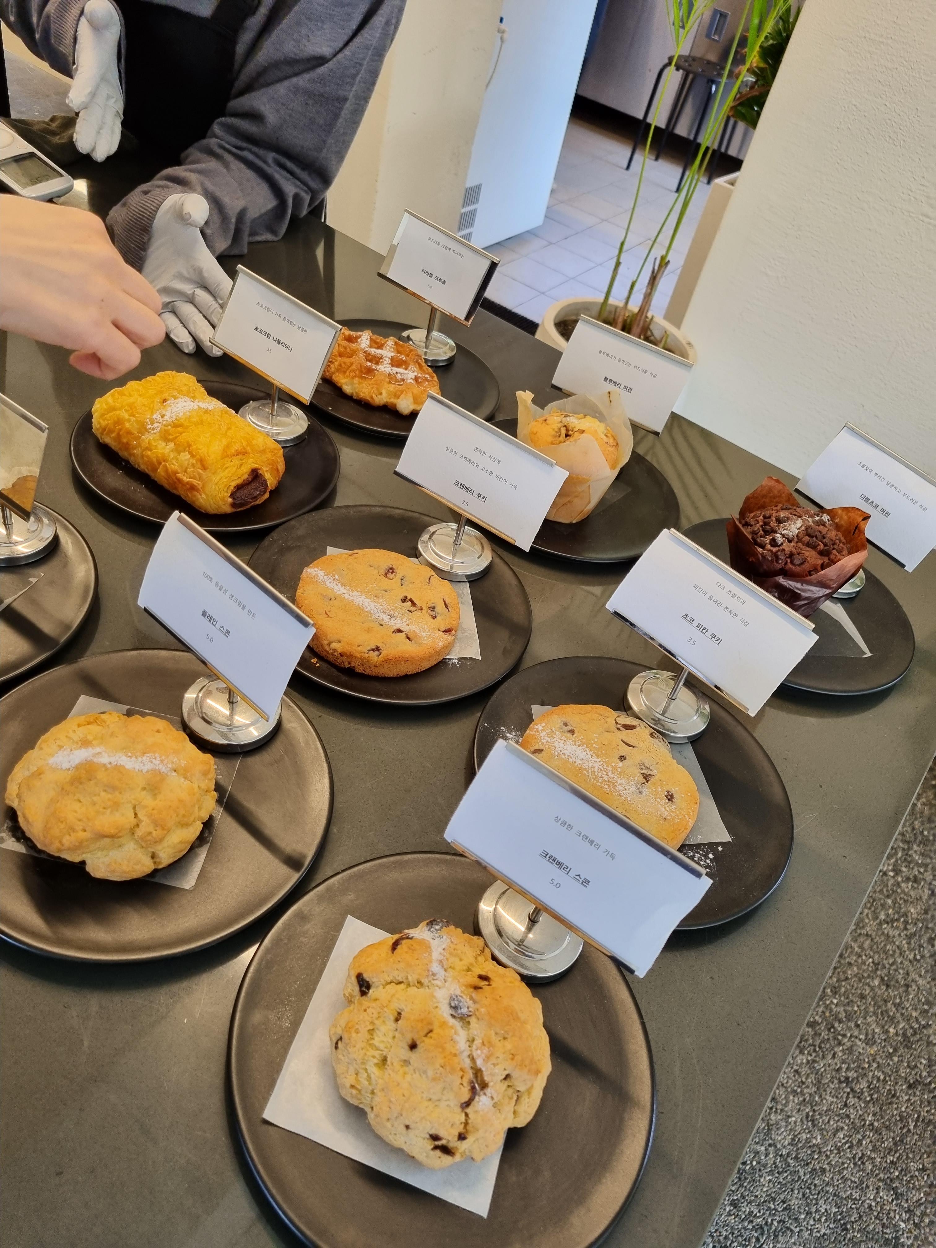 팔 숲에 음료 종류가 생각보다 다양해서 고민하다가, 크림 카페라테와 초콜릿 모카 라테를 골랐습니다. 빵과 쿠키는 너무 배불러서 생략했지만 맛있어 보였어요. 주변에 디저트를 시키시는 분들을 둘러보니 브런치와 크로플 메뉴도 꽤 인기 있는 것 같아요.